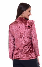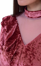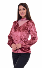 Джемпер женский из бархата. Горловина стойка. Рукава длинные на манжете. Полуприталенного силуэта. Вставка из сетки в "V" образный вырез и осиметричная рюша придают элегантности джемперу. Длина изделия : 44 р. - 62 см, 46 р. - 63 см, 48 р. - 64 см, 50 р.- 65 см, 52 р. - 66 см, 54 р.- 67 см, 56 р. - 68 см.