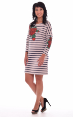 Платье женское из рибаны. Приталенного силуэта. Горловина полукруглая. Длинный рукав, приспущенное плечо. Элегантный принт в виде печати на рукаве и полочке изящно сочетается с тканью. Длина изделия : 44 р. - 88 см, 46 р. - 89 см, 48 р. - 90 см, 50 р.- 94 см, 52 р. - 92 см, 54 р. - 98 см, 56 р. - 99 см.