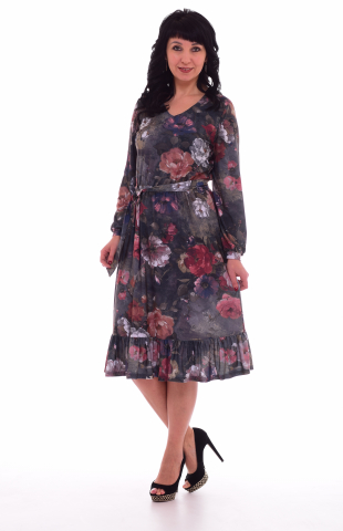 Элегантное праздничное платье из плательной ткани. Пояс на резинке. Рукав длинный из трикотажа - люрекс с горохом. Горловина полукруглая. Сзади застежка - пуговица. По низу сборка. Длина изделия по спинке: 42 р. - 114 см, 44 р. - 115 см, 46 р. - 116 см, 48 р. - 117 см, 50 р. - 118 см, 52 р. - 119 см. Длина нижнего белья : 42 р. - 99 см, 44 р. - 100 см, 46 р. - 101 см, 48 р. - 102 см, 50 р.- 103 см, 52 р. - 103 см.