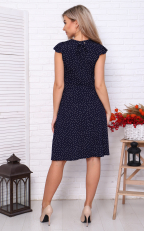 Летнее женское платье А-силуэта, отрезное по талии, рукава-крылышки, круглую горловину украшает кружевной воротник. Длина по спинке: 40-91 см, 42-92 см, 44-95 см, 46-97 см, 48-99 см, 50-103 см. Уход: вода при стирке – не выше 40 градусов;
