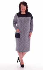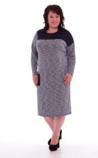 Платье из плательной ткани. Полуприталенного силуэта. Горловина полукруглая. Кокетка и карман по правой стороне из другой ткани. Рукав длинный. 48 р. - 98 см, 50 р.- 98,5 см, 52 р. - 99 см, 54 р. - 99,5 см, 56 р. - 100 см, 58 р. - 101 см, 60 р. - 102 см.