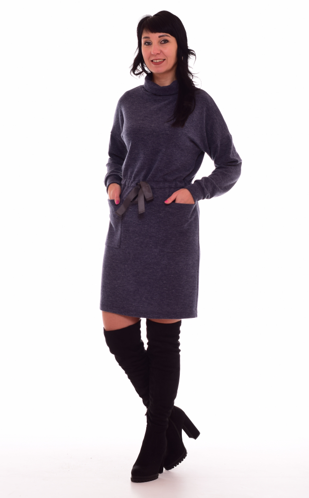 Платье повседневное из ангоры. Воротник с заворотом, на поясе кулиска с лентой, накладные карманы по переду. Рукава длинные на манжете. Длина изделия : 42 р. - 90 см, 44 р. - 91 см, 46 р. - 92 см, 48 р. - 93 см, 50 р.- 94 см, 52 р. - 95 см, 54 р. - 96 см.