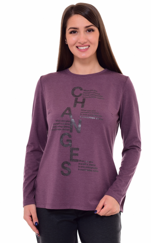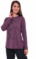 Джемпер женский из трикотажа " Ангора". Горловина полукруглая. Рукава длинные. Полуприталенного силуэта. Разрезы по бокам. Стильный принт в виде печати. Длина изделия : 42 р. - 60 см, 44 р. - 61 см, 46 р. - 62 см, 48 р. - 63 см, 50 р.- 64 см, 52 р. - 65 см, 54 р.- 66 см, 56 р. - 67 см.